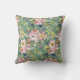 Pink Flowers on Green Throw Pillow