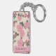 Pink Flowers, Pattern Of Flowers, Your Name Keychain