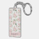 Pink Flowers, Roses, Watercolor Flowers, Your Name Keychain