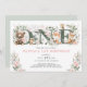 Pink Flowers Woodland Animals 1st Birthday Girl Invitation