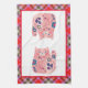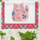 A Scandinavian Kitchen Dish Towel Done In A Colorful Red Paid With A Pink Flowered Folk Art Cats Center.