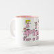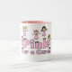 A cute mug with five stick figure females wearing pink and pink text that reads "Pink for a Cure!". This breast cancer awareness mug can be personalized easy on the spot with a name or other text of your choice.