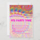 Pink fractal art pattern party invitations.