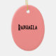 A simple, solid color oval frame on oval-shaped ornament. If your favorite color frame is missing, send a request. There is room on the back for more information.