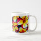 with original art design from watercolour painting by Sacha Grossel of tropical pink, yellow and white frangipani flowers in close focus, macro style. This bright, colourful, floral botanical design is reminiscent of summer, surf culture, hot weather and being near the beach.