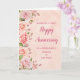Happy wedding anniversary card for friend and his wife with elegant pink watercolor roses and spring greenery, with a faux rose gold pattern.