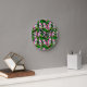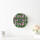 Pink Frog On Green Leaf Pattern Design Round Clock