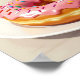 An adorable illustration of a pink coffee cup full of warm coffee and a strawberry frosted sprinkled donut.