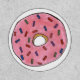 Patch design features an original marker illustration of a pink frosted donut with sprinkles.