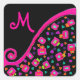 PINK FUCHSIA BLACK ABSTRACT DECO MONOGRAM SQUARE STICKER