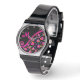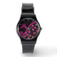 PINK FUCHSIA BLACK ABSTRACT DECO MONOGRAM WATCH