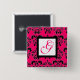 PINK FUCHSIA DAMASK WHITE SQUARE MONOGRAM PINBACK BUTTON