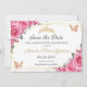 Pink Fuchsia Floral Gold Quinceanera Sweet Sixteen Save The Date