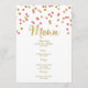 Wedding dinner menu in glamorous fuchsia hot pink and gold glitter confetti pattern. (please note glitter is print only)