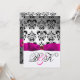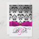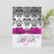 PINK FUCHSIA RIBBON WHITE BLACK DAMASK MONOGRAM INVITATION