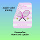 This baby blanket has a feminine design featuring crossed tennis rackets in pink and is ready for you to personalize with your baby's name. The accompanying caption is simply "Future tennis star" or you can customize this too. The background has broad stripes in colors of pale pink and white. On the back is a repeating geometric pattern of pink tennis rackets on a white background.