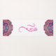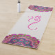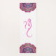 Indian inspired yoga mat done in white, with a hot pink decorative Ganesha symbol, in the middle. Graphics of colorful pink mandalas decorate both ends of the mat. Same design is featured on both the front and backside of the mat.