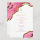 Pink Geode Agate Gold Cross Baptism Christening Invitation