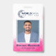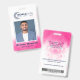 Modern employee ID badge with a stylish pink geometric background, customizable with your logo, photo, name, title, and barcode. Perfect for corporate teams, events, conferences, and remote staff. A professional and eye-catching way to display credentials.