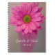 Customize the pretty Pink Gerber Daisy in Vase Wedding Spiral Notebook with the personal names of the bride and groom and date to create a one of a kind planner, advice book for the newlyweds or guest book for their marriage ceremony. This cute customized flowery nuptial note book features a digitally painted floral photograph of a pink gerbera daisy flower blossom in a glass vase. Unique inspo or idea for an elegant garden party celebration event.