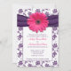 Pink Gerber Daisy Purple Damask Wedding Invitation