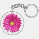 Pink gerbera daisy chic floral round keychain