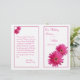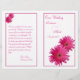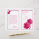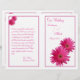 The text on this pink gerbera daisy wedding program is fully customizable. It is intended to be folded down the middle. To change the text, use the personalize option. For more extensive text changes, such as changes to the font, font color, font size, background color, or text layout, use the customize option. Also, once your text is finalized, if you need to move it around a bit, you can do that using the customize option. This pink gerbera daisy special occasion program is currently customized as a wedding program, but it would work well as a program for a birthday celebration (sweet 16), wedding shower, or possibly high school graduation celebration as well. Really, this would even make a really nice church bulletin with changes to the text. Let your imagination lead you.