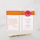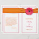The text and background color on this pink gerber daisy orange ribbon wedding program is fully customizable. It is intended to be folded down the middle when you receive it. To change the text, use the personalize option. For more extensive changes, such as changes to the font, font color, font size, background color, or text layout, use the customize option. Also, once your text is finalized, if you need to move it around a bit, you can do that using the customize option. This pink gerbera daisy, orange ribbon special occasion program is currently customized as a wedding program, but it would work well as a program for a birthday celebration (sweet 16), wedding shower, or possibly high school graduation celebration as well. Really, this would even make a really nice church bulletin with changes to the text. Let your imagination lead you.