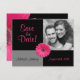 Both the text and the photo on these modern and unique pink gerbera daisy black and white photo wedding save the date invitations or announcements are fully customizable. You can change them both with the personalize options. For more extensive changes to this pink gerber daisy invitation, including changing the font, font color, or text placement, or to change the picture size and placement use the customize it option. The colors on this card are hot pink, black, and grey. Make sure to check out the available paper type options as well.