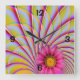 Brighten up your dining area with this pink gerbera daisy clock on a bright cheery fractal background perfect for poolside, patio, or kitchen. Match to other home decor items here at FractaGifts.