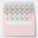 This envelope features a sweet pink and white stripe with gumdrop accents and a gingerbread house design on the back flap. The front of the envelope has text that says "kindly deliver to." On the back you can personalize with your name and return address. The inside has a gumdrop pattern.