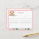 This festive recipe card features a sweet gingerbread house decorated with gumdrops. There is a gumdrop border at the bottom with a pink and white polkadots border around the edge. At the top it says "from the kitchen of:" with a place to personalize with a name. The back coordinates with the front with extra lines for adding additional recipe information. This design coordinates with other products in the Gingerbread Christmas Party Collection.
