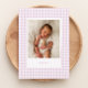 Announce your little one’s arrival in timeless style with this pink gingham baby announcement card. Featuring a soft pastel checkered border, a large photo area, and elegant typography for your baby’s name, it perfectly blends preppy charm with a pastel aesthetic. Ideal for birth announcements, baby shower thank you notes, or keepsake stationery for new parents.