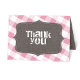 Southern country inspired rustic pink gingham canvas thank you cards designed with "Thank you" in white over a brown frame canvas texture illustration, on a diagonal pink and white gingham pattern. The inside of these pink gingham thank you cards is personalized with your own custom message of thanks. You may also easily delete the template text to leave the card(s) blank for handwriting your own sentiments of gratitude. These cards, with their classic gingham pattern, are perfect for Baby Shower and Southern Bridal Shower celebrations.