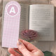 Add a touch of charm to your reading routine with this sweet pink gingham monogram bookmark. Designed with a classic pastel plaid background and a bold initial featured inside a round badge at the top, this stylish bookmark blends country cottagecore vibes with modern simplicity. Whether you're curling up with a cozy romance or gifting a teacher or book club friend, this monogram bookmark is a delightful and functional keepsake. Great for students, journaling, or book lovers who appreciate both form and function. Perfect for everyday readers, bridesmaid gifts, classroom rewards, or just a little something pretty for your pages! Edit monogram from the product page or to change font style or color, use the design tool.