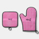 Pink gingham check oven mitt and pot holder, personalized with the name of your choice - if so desired.