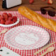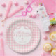 Pink Gingham Coquette Bow Baptism Paper Plates