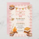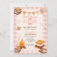 Pink Gingham Fall Camping Bonfire Smores Invitation