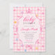 You can edit the design on the back through our Design Tool and selecting "Layers." By customizing the back of your Pink Gingham Floral Bow Baby Shower Invitation, you can have a more complete invitation and present more information to your potential guests, but don’t worry - you don’t have to add a design to the back if you prefer to just have a design in the front.