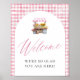 This Pink Gingham Bridal Shower Welcome Sign features a soft pink gingham background, delicate watercolor florals, and a charming farmer’s market-inspired design — perfect for a cozy, stylish celebration.