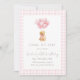 Sweet puppy birthday design with soft watercolor dog illustration and heart-shaped balloon bouquet. Pink gingham background and delicate bow detail give a cute, preppy, and elegant look—perfect for a girls birthday party and matching stationery.