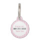 Dress your dog or cat in style with this pretty personalized pet ID tag. Adorned with a classic pink gingham check pattern and pink hearts, this pet ID tag exudes sweetness and femininity. Add a personal touch by customizing it with a pet’s name and owner phone number to create a one-of-a-kind gift for yourself, a new pet owner, or animal lover.
