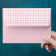 Add a pretty punch to your invitations or announcements, with this stylish envelope done in pale pink. A light pink and white gingham pattern covers the inside of the envelope and on the back flap. Black return address, on the front, is ready to personalize.