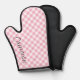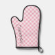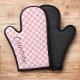 Personalize our oven mitt with your recipient name. It’s canvas on the printed side and non slip black silicone or quilted silver on the heat resistant side. Designed in pink gingham by MISOOK. No minimum order quantity and no setup fee.