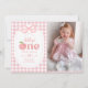 Pink Gingham Peach First Birthday Photo Invitation