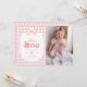 Yes, you can print on the back of your invitation for free! Most designs already have a corresponding design on the back that can be personalized using the Design Tool and going to Layers. This is a great way to communicate more information or further personalize your Pink Gingham Peach First Birthday Photo Invitation. The option is really up to you.
