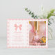 Pink Gingham Pink Bow Birthday Photo Invitation