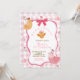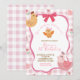 Pink Gingham Plaid Chick 1st Birthday Invitation, Pink Quirky One Cute Chic Birthday Invitation, Pink Coquette Bow Birthday Invite, Editable Preppy Little Chicken First Birthday