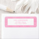 Create your own custom return address labels for Christmas cards featuring personalized minimalist typography on a cute pink gingham plaid pattern background.