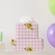 Pink Gingham Sunflower baby shower wrapping paper.